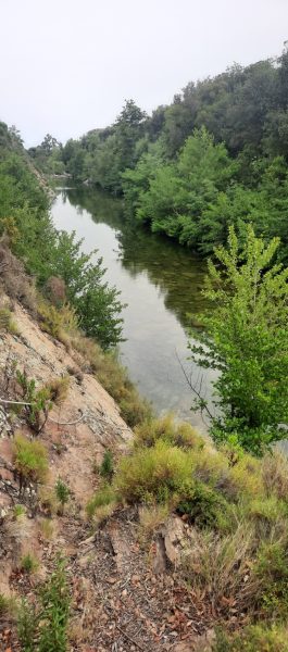 Arrêt à la petite station thermale de Pietrapola. A notre passage en 2021, tout était fermé et nous avions attribué cela au Covid. Mais rien ne semble avoir ouvert depuis. Lorsque je descends à pied à la rivière, je découvre un chantier en cours avec une grande structure sur des piliers métalliques. Le village n’est pas abandonné pour autant. Les belles maisons de granite sont dispersées, d’autres modernes sont fleuries. Difficile d’imaginer une animation de curistes.
