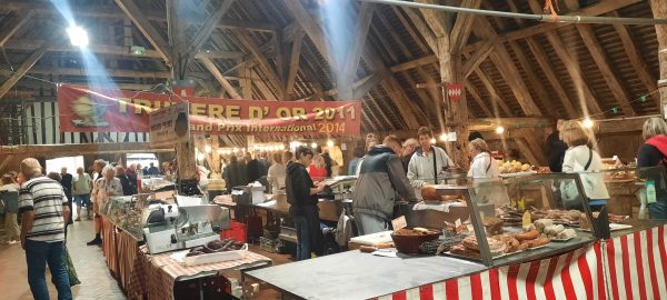 Samedi est jour de marché à Dives, excellente occasion pour découvrir cette petite ville animée. L’un des joyaux est la Halle médiévale à la belle charpente de bois reposant sur 60 piliers. Charcutiers, bouchers, fromagers et primeurs sont installés sous cette belle toiture pentue. Les autres commerçants ont investi toutes les rues adjacentes étroites.