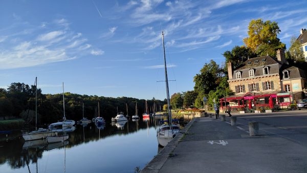 Le cours de la rivière s’élargit au Port. De nombreux bateaux de plaisance sont à quai dont la Belle Angèle . La Belle Angèle est le portrait d’une des hôtelières de Pont Aven, peinte par Gauguin actuellement exposée au Musée d’Orsay. C’est aussi un bateau qui emmène les touristes dans l’estuaire de l’Aven et du Belon (Belon comme les huitres!). Beaux hôtels et restaurants chics pour un tourisme friqué.