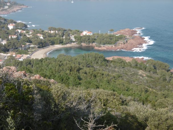 J’essaie de retenir le nom des routes pour retrouver notre chemin quand nous serons livrées à nous-même. Tous les noms sont en Français, nous suivons la Route de la Roquette, arrivons dans la rue des Grandes Moulins, passons devant Courtil Jardin. La petite route qui va à la plage est une « Ruette » où piétons, cyclistes et cavaliers sont prioritaires, les autos ne doivent pas dépasser 15mpH(20 km/h)