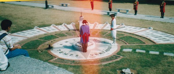 Nous montons sur les enceintes sous un soleil cuisant(j’aurais dû prendre mon chapeau de paille ou un foulard). Sur la Place d’Armes, une surprise nous attend : une dizaine de soldats espagnols en perruque et bottes de mousquetaires relève la garde . deux d’entre eux se détachent. Un minuscule canon est mis à feu à l’aide d’une loupe. Autour du canon, en arc de cercle : un grand cadran solaire.