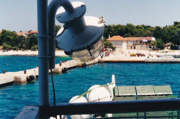 Sur le quai, plusieurs files de voitures attendent l’embarquement. Bien sûr, nous nous trompons de queue. C’est la foire d’empoigne, personne n’est capable de nous renseigner, finalement nous montons avant tout le monde dans le ferry, dépassant par la droite une imposante caravane tirée par une imposante berline immatriculée en Allemagne, sous l’œil furibard du conducteur et les vives protestations de sa femme.