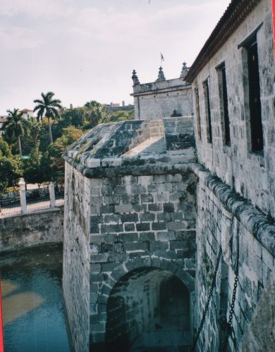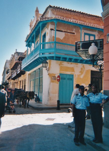 La malédiction du Vendredi treize a encore frappé : le guide Gallimard a disparu. je retourne en vitesse à la Plaza Vieja par le chemin le plus direct : Obrapia (sur laquelle donnent les fenêtres de notre chambre) Santo Ignacio . je suis contente d’arriver à me repérer dans notre quartier. Le livre est passé par pertes et profits. Le réceptionniste nous monte dans la chambre une salade de poulet et des calmars pour 10 $. Après le dîner, nous faisons un dernier tour : Place d’Armes et le petit Temple grec qui commémore la fondation de La Havane. Nous longeons les docks (un cargo rouillé sur l’autre rive) et rentrons par la Plaza Vieja espérant retrouver Gallimard. Les rues sont désertées par les touristes mais il y a de la musique dans tous les bars.