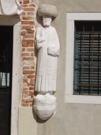 Les vaporetti sont en grève. Seules fonctionnent les navettes vers la Giudecca. Il faut donc rentrer à pied. Comme il est midi nous achetons des tramezzini : crevette et roquette, un autre de viande rouge très tendre, très fine peu salée (carpaccio ou braciola ?). Sous de grands parasols carrés de toile beige, sur le Campo San Barnaba , on prend un café et un verre de vin blanc. Il fait très bon avec un petit vent. J’adore ces pauses au café, y dessiner, écrire, regarder les passants (sans compter que c’est l’unique moyen d’aller aux toilettes). Au milieu de la place il y a un grand puits octogonal en pierre d’Istrie recouvert par un hémisphère métallique.