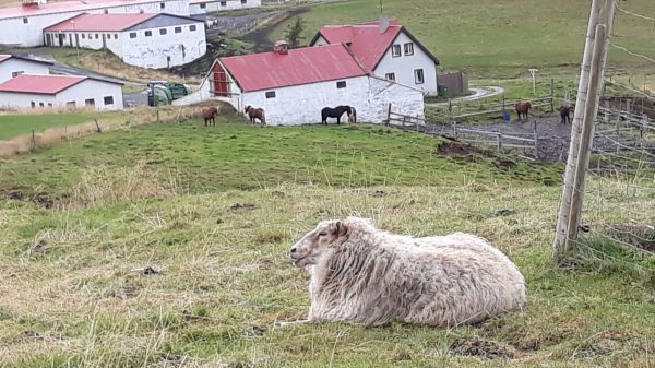 Depuis le début du séjour, nous avions décidé d’aller au restaurant le premier jour de pluie. Nous n’avons donc pas emporté de pique-nique. Ce matin les restaurants de Portsall étaient fermés. Le soleil se pointe : nous allons faire les courses à Ploudalmezeau. Le chantier qui barre la route va nous compliquer les trajets toute la journée (le GPS l’ignore et nous dirige vers cette tranchée infranchissable). Dans un si petit bourg Leclerc a installé un magasin gigantesque où je trouve crevettes, salade carotte, ananas et surimi.