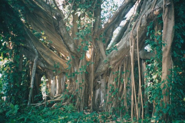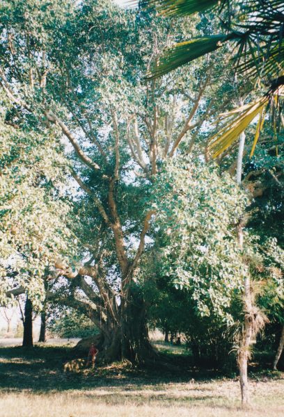 Le Jardin Botanique est un immense arboretum situé en pleine campagne. Rien à voir avec un parc urbain ou avec une attraction pour touristes . D’ailleurs, nous sommes les seules visiteuses étrangères. Des allées sommaires conduisent à des plantations thématiques : ici, le coin des paliers, là bas les cactus ou les bambous. Les arbres sont immenses. C’est le gigantisme qui frappe tout d’abord l’imagination . Evidemment, nous n’économisons pas la pellicule . Il faut mettre un personnage pour donner l’échelle tellement il est important de souligner la taille des végétaux ;