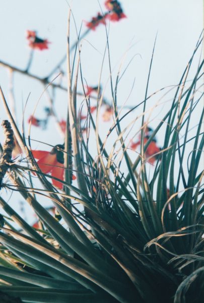 Je cherche les fleurs pour égayer l’album photo. Une curieuse grappe rouge m’attire . Surprise du jour : un colibri !