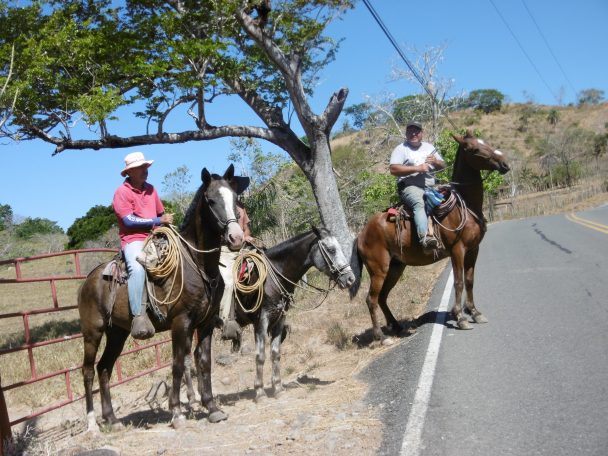 Ici, de l’élevage : des cowboys, de grands ranchos, des affiches pour des corridas et des rodéos. Certains arbres forment des parapluies de dimensions impressionnantes. Le sol est sec, nous n’avons parcouru qu’une trentaine de kilomètre et découvrons une nouvelle géographie.