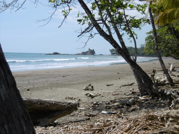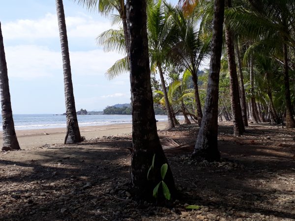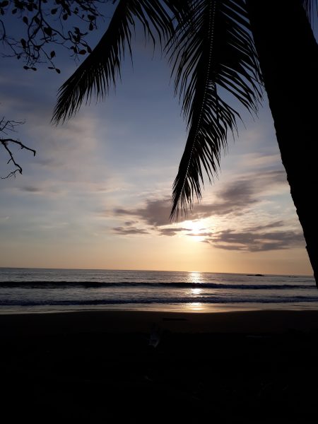 La mer se trouve derrière les palmeraies mais en dehors des chemins agricoles il n’y a aucun accès à la plage avant Matapalo, le dernier village avant d’arriver. Le restaurant A Kachete qui sert aussi bien des plats traditionnels que pizzas et hamburgers. Nous sommes bien accueillies, la pizza pequena est plutôt medium – excellente. Le casado est bien servi.