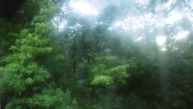 Les arbres de la Forêt Nuageuse se secouent furieusement, les nuages baignent les cimes. Le vent se déchaîne. L’averse est drue.