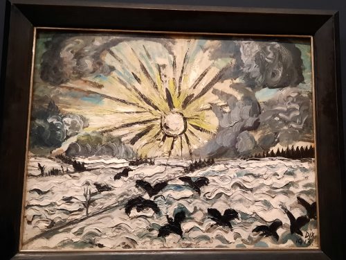 le Soleil levant de Dix , clin d’œil à Van Gogh ,semble prémonitoire : peint en 1913, il semble annoncer le carnage de 14-18 . Pour mémoire, Delaunay. Inconnus de moi : Trachsel(1909) et Morgner.
