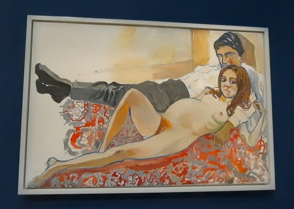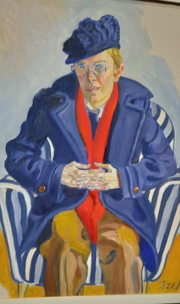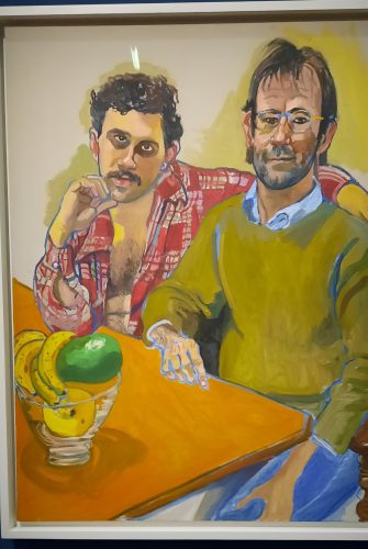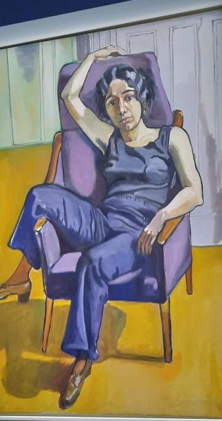 J’ai été saisie par ces portraits puissants. Ces femmes et ces hommes qui vous regardent bien en face, assis sur le fauteuil à rayure ou sur le canapé d’Alice. Aucun artifice, les mains puissantes ou usées par le travail, les chaussures sont aussi des marqueurs sociaux. Alice Neel donne l’image d’une Amérique diverse, colorée, de ses voisins Portoricains ou Haïtiens, des militants communistes, des artistes, journalistes, activistes….