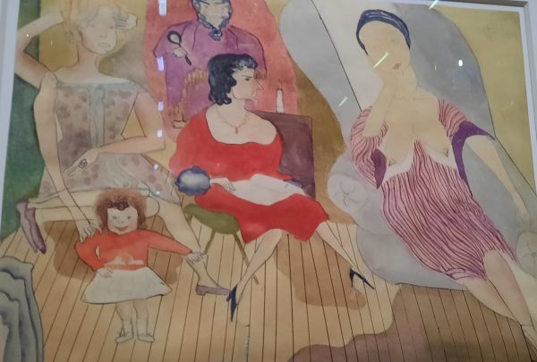 Dès 1929, cette aquarelle est un manifeste féministe : la maman de la petite fille a trois jambes et trois bras, il lui faut au moins cela pour assumer le travail que lui donne un enfant.