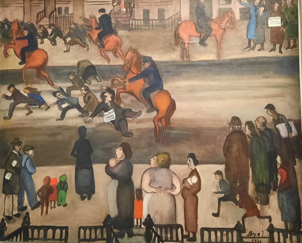 Dans les années 30, Alice Neel peint New York  vide dans la dépression, manifestations et grèves. Son engagement communiste lui fait aussi protester contre la montée du nazisme en Allemagne