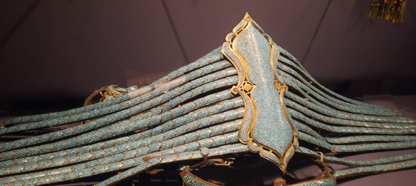 De Soie et d’Or sont les maîtres-mots de cette exposition, si vous attendiez des caravanes à travers les steppes de l’Asie Centrale, des khans ou l’ombre de Gengis Khan et de Tamerlan vous resterez peut être sur votre faim.