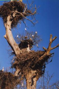 cigognes et hérons blancs