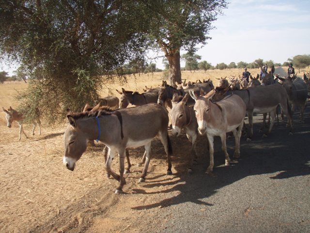 les âniers ont capturé des ânes sauvages et vont les vendre au marché