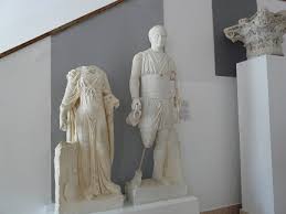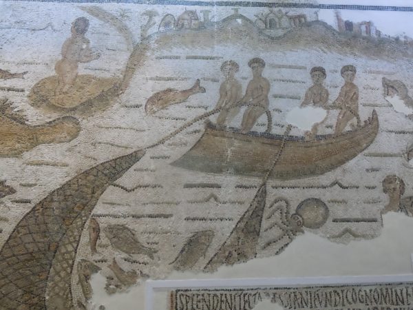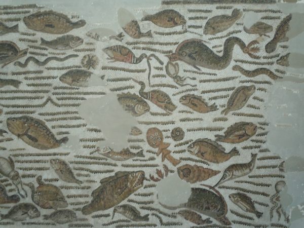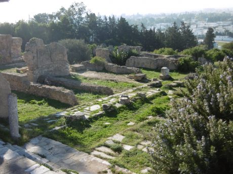 A l’étage des vitrines racontent la vie quotidienne aux temps des Carthaginois : céramiques d’usage, bijoux, reconstitution du régime alimentaire, on consommait les bovins âgés quand ils n’étaient plus en état de travailler, les carthaginois mangeaient du porc (pas évident pour une population d’origine sémite). On voit aussi des articles d’importation : vaisselle grecque, amulettes égyptiennes. La religion punique est racontée aussi les emprunts étrangers : Déméter et Bes s’ajoutent au panthéon carthaginois. Deux gisants, prêtres et prêtresses. Ils me rappellent les sarcophages en terre cuite du Musée Archéologique de la Valette.