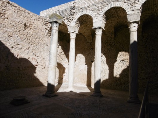 La cité romaine de Mariana fut fondée au er siècle av. J.C. par Marius. Sur le site on observe les fondations en briques quelques colonnes également en briquais, d’autres rondes en granite. Aucun panneau explicatif. Le guide Vert signale une basilique paléochrétienne et un baptistère. Evidemment je n’ai rien reconnu mais j’ai aimé le calme du site, le pin parasol et l’olivier qui se détachent sur le décor des montagnes. Un beau musée devrait s’ouvrir prochainement, sur Internet il est annoncé pour le 22 juin 2021.