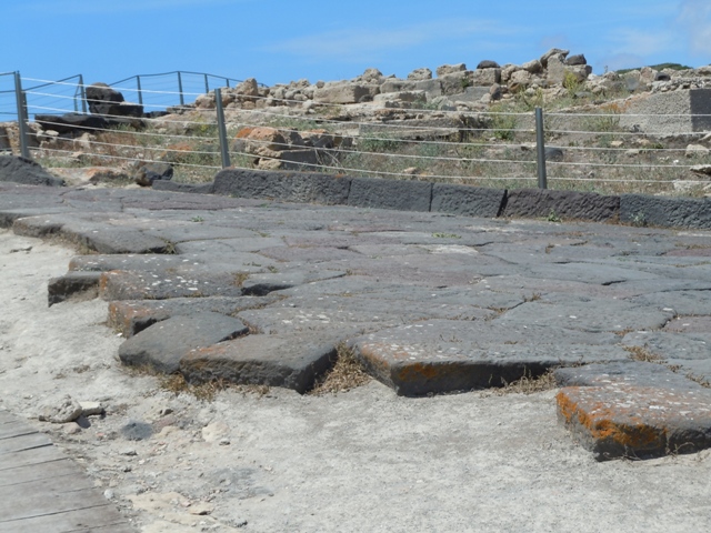 Un peu à l’écart, en hauteur les cabanes rondes nuragiques sont bien visibles, elles dominaient le port et le marais. On loin, l’emplacement du tophet phénicien et les fortifications romaines.