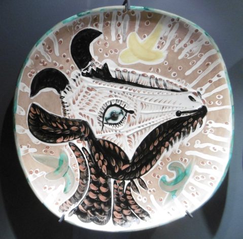 Le rez de chaussée présenter les céramiques de Picasso . la plupart sont des assiettes colorées ou non avec des reliefs (ou non) . J’ai bien aimé la Chèvre (déjà à Antibes) et les motifs espagnols.