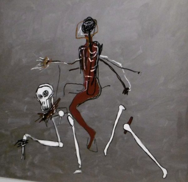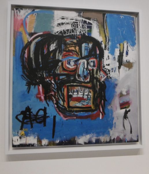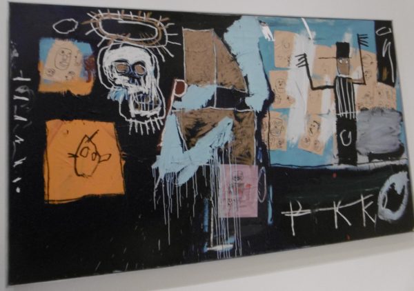 Un des dernier tableaux de l’artiste, ne rien voir de prémonitoire. Basquiat est mort d’overdose mais il avait encore plein de projets, entre aute ce nouveau style avec un fond uni!