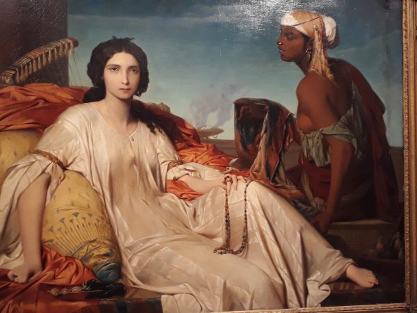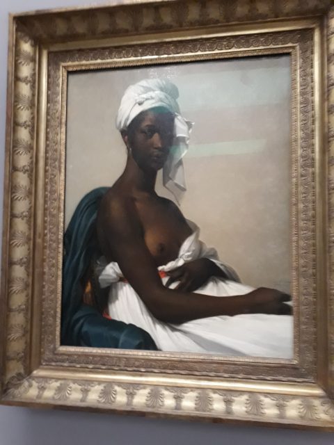 Les conservateurs qui ont organisé l’exposition on fait des recherches pour nous présenter ces modèles, leur donner un nom, une identité au lieu des titres anciens « portraits de Nègre » ou de « mulâtresse »….Nous découvrons des personnages comme Madeleine, la jeune femme de l’affiche, domestique affranchie du beau-frère de Guillemine Benoist. Joseph, modèle de Géricault qui en a fait le marin central du Radeau de la Méduse, était aussi le modèle de Chasseriau