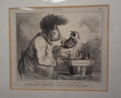 La salle suivante s’intitule Métissage littéraire un mur entier est dévolu à Alexandre Dumas d’abord caricaturé en exagérant ses traits africains puis portraituré comme un blanc quand il devient célèbre et respecté.