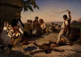 Le Châtiment des quatre piquets démontrant la cruauté de l’esclavage fut refusé au Salon de 1843 et la date de 1849 (après l’Abolition) est inscrit .