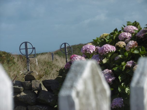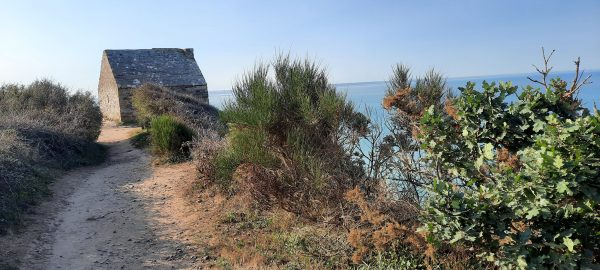 Pieds nus. C’est une balade très agréable quand la mer est basse. Ce matin seule une étroite frange de sable mouillé est dégagé mais recouverte de graviers, galets, coquilles brisées et de millions de crépidules . Je suis forcée de remettre les tongs.