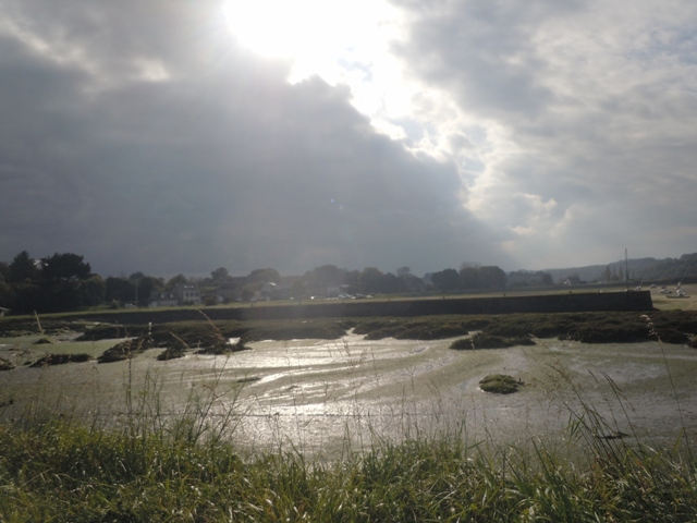 Pour piqueniquer nous allons près du centre de valorisation des algues de Pen Lan. La route court derrière une digue sur laquelle se trouve le « chemin de découverte ». Comme l’estran est découvert nous suivons les mouvements des tracteurs des ostréiculteurs et les pêcheurs à pied qui fouillent la plage