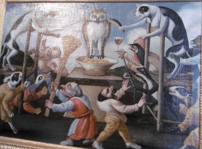 Une vieille sorcière vient à ma rencontre pendant que je longe le bord en nageant, poussant une frite rose recourbée dans l’eau. Elle mâche du chewing-gum en grimaçant. Elle s’amuse à me faire peur « il y a une méduse » . Comme je ne semble pas effrayée par la prétendue méduse, elle m’avertit qu’il y a un étron flottant à côté de moi. Cela me dégoûte et je sors.