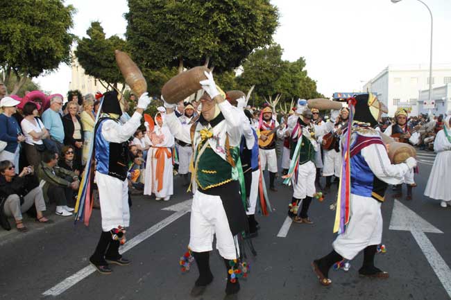 Le Carnaval d’Arrecife se déroule ce soir . La Passacalle (passacaille) démarre près de la station des guaguas et emprunte la belle promenade plantée de la Via Medular. Il faut se garer sur des parkings prévus ad hoc et attendre dans un air vif et bruineux pas du tout tropical. Toute la ville est dehors avec des déguisements-maison pas toujours réussis, enfants mais aussi adolescents et même jeunes adultes. En revanche, très peu de touristes. Une odeur de barbe à papa, crêpes, beignets se répand. Des familles avec des poussettes déambulent en attendant le défilé ou occupant une place sur le bord du trottoir.