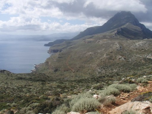 Ciel un peu nuageux sur la montagne, voilé sur la mer. Il fait bien frais.