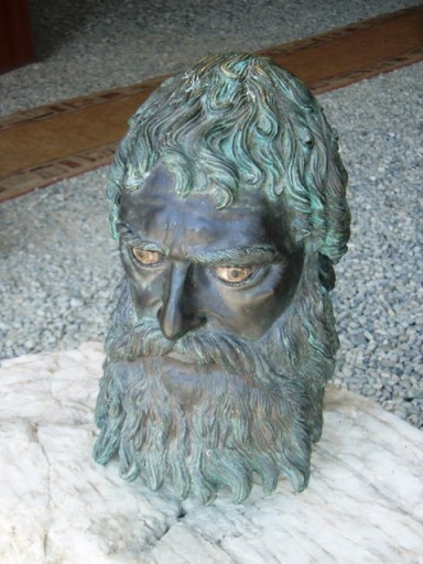 Le sentier s’engage dans les buissons et les petits chênes. Sentier blanc, dans les roches blanches friables portant de curieuses taches bleues-vert (oxyde de cuivre ?), puis la pente devient très raide. On parcourt une allée antique creusée dans la roche, on en devine encore les marches taillée pour monter au temple. Un mur de gros blocs entoure le palais-sanctuaire. J’ai beaucoup de mal à distinguer ce qui est fait de la main de l’homme et les roches encaissantes. Je suis un groupe de Bulgares conduit par un guide. Evidemment, je ne comprends rien aux explications mais il me signale qu’il y a quelque chose à regarder. A moi d’interpréter ! Sans repères connus, je rêve à Alexandre le Grand qui est venu au temple de Dionysos consulter l’oracle qui lui prédit des conquêtes mais aussi une mort jeune. Ce n’est pas ma première rencontre avec Alexandre. A Siwa, un autre oracle lui avait promis la conquête de l’Egypte.
