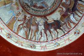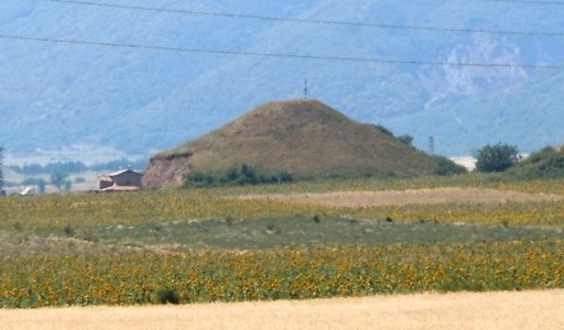 Dionysos eut un prédécesseur thrace : Zagreus dont le culte impliquait des mystères orphiques, ds sacrifices sanglants, des rites du vin et du feu. En 2000, l’archéologue bulgare Nikolai Ovtcharov d’après des descriptions d’Hérodote et de Suétone et d’autres sources antiques, émit l’hypothèse que le temple de Dionysos perdu serait à Perperikon. Les jarres contenant le vin de dionysos sont encore en place mi-enterrées, protégées par un petit auvent moderne. Je découvre les bac rectangulaires destinées à recueillir le vin, la citerne à eau au sommet mais je ne trouve ni trône ni le chemin de l’Acropole. Au sommet de la colline, les archéologues sont sur place avec des dizaines de terrassiers, un cheval, des bûcherons. C’est l’heure de la pause ; Les femmes sont assises entre elles ; L’une porte le même foulard en étamine blanche bordé de perle que celui que j’ai acheté à Beysehir(Turquie) . Les archéologues ont aménagé une cantine avec des tables, des bands et des hamacs. Les bûcherons se tiennent à part et parlent turc entre eux. Il semble que les femmes soient cahrgée du terrassement tandis que les hommes abattent le petit bois de chêne. Je trouve la « sortie », un sentier très pentu qui serpente à couvert des arbres.