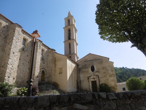 Les curiosités du village sont l’église de l’Annonciation (en haut) et l’Hôtel de la monnaie où Paoli fit battre monnaie en 1763 : les « soldi ».