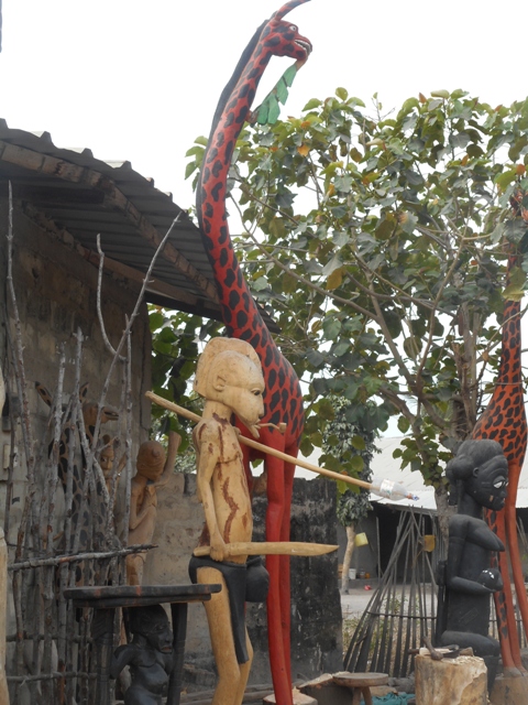 Nous descendons à la plage, pas très convaincues. Peut être le restaurant sur la colline en face avec sa grande terrasse bleue serait mieux ? Nous reprenons la voiture jusqu’à la fourche, traversons une vraie forêt de lauriers roses. Au milieu coule un ruisseau. Passons à côté d’une belle plage de sable gris presque déserte. Un couple profite de l’occasion pour une baignade naturiste. La piste qui remonte vers le restaurant n’est pas carrossable pour la Panda, il aurait fallu un SUV !